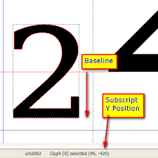 is a number, figure, symbol, or indicator that appears smaller than the normal line of type and is set slightly below or above it – subscripts appear at or below the baseline, while superscripts are above.